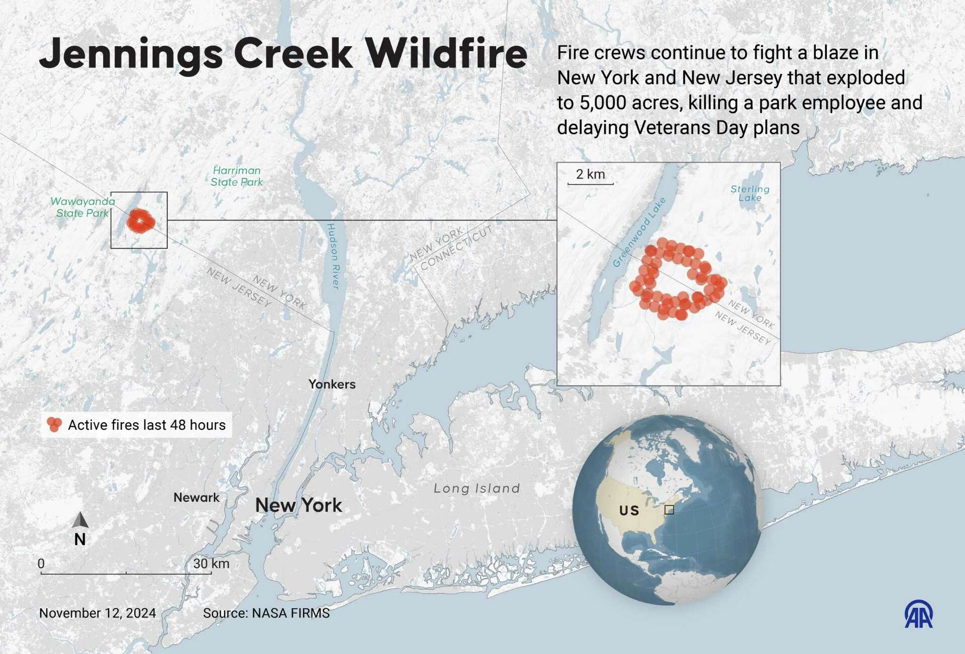 The NY agency leading the suppression effort was the Department of Environmental Conservation (NYSDEC) and not State Parks. Sterling Forest's public land manager is the Office of Parks, Recreation and Historic Preservation (OPRHP), aka State Parks. Specifically, firefighting was led by NYSDEC Forest Rangers and the New Jersey Forest Fire Service - as it crossed state lines, with many other organizations involved.